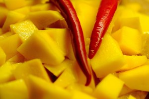 God mat handler ofte om å veie smaker mot hverandre. I indisk matlaging er chutney’en ofte med på å skape det perfekte balansepunktet. Jeg har spist mange rare, gode, sterke, syrlige, søte, bitre chutneyer rundt om i verden, med ulik konsistens og med ulike ingredienser. Eple, rosin, ananas, pære, plomme. Likevel er det ikke til å komme unna at mangochutney’en ofte står igjen som vinneren. Både konsistens og smak er helt øverst på pallen.