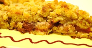 Du trenger:1 kg victoriaplommer, saften av 1 sitron, 2 ss finhakket mynte, 1 ss finhakket sitronskall, 3 ss brunt sukker, 1/2 ts kanel, 1 knivsodd chilipulver, 1 dl hvitvin, 1 ss maizena, 125 gr hvetemel. 125 gr smør, 125 gr mandler, 125 gr sukker, ca. tre plater butterdeig.