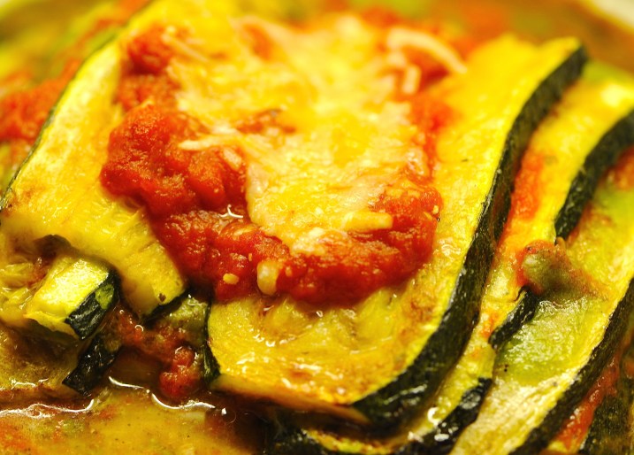 For noen uker siden sendte han meg en oppskrift på en squashlasagne med en skikkelig feit og fyldig tomatsaus. Etter å ha fiksa litt på den, deler jeg den med dere. Den er virkelig verd innsatsen. Hele poenget er å koke ned tomatene skikkelig. Det tar litt tid, men du får fram en aldeles herlig, konsentrert smak. Kombinert med grillsmaken fra squashen blir dette en superduo.