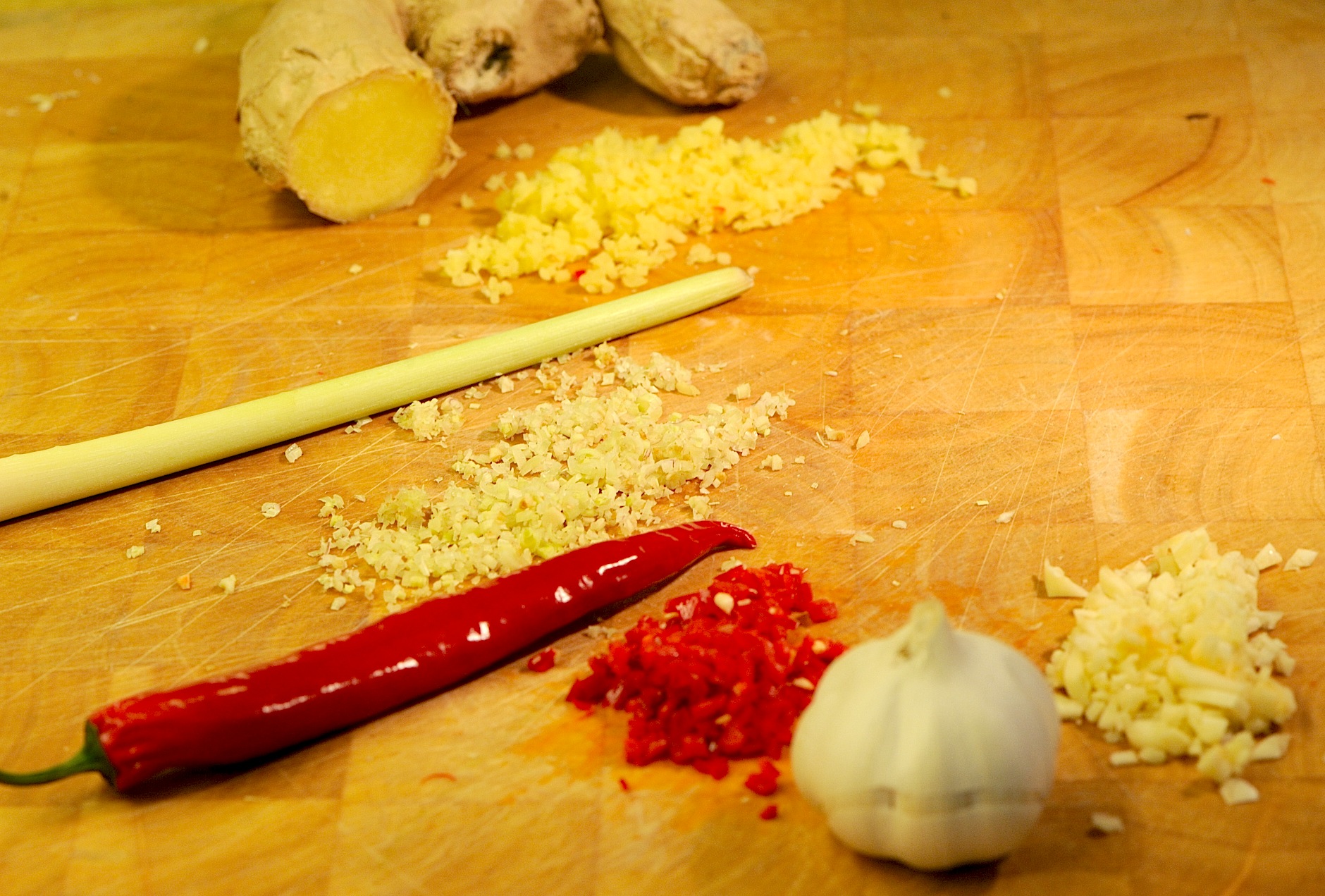 Du trenger: 100 gram cashewnøtter som bløtlegges i 2 dl kokende vann, 4 dl grønnsaksbuljong, 2 dl kokende vann, 2 dl matfløte. 1 søtpotet, 1 squash, 1 gul løk i båter, ½ rød løk, 1 rød paprika, 2 gulrøtter, 1 finhakket rød chili, 2 ss finhakket ingefær, 4 fedd finhakket hvitløk, 1 strå finhakket sitrongress, 1 god klype safrantråder, 1 ts gurkemeie, 3 ts korianderpulver, 1 ts garam masala, saften fra 1 lime, olje, salt, sukker.