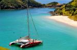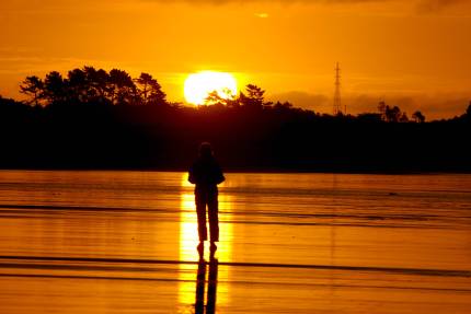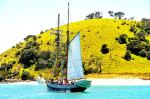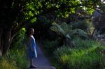 Fram med kartet, bort til en fyr bak disken: Howdy, mate! Unnskyld, men du kjenner ikke til dette her? Peker på Kina Beach, et lite stykke bortenfor den sentrale folkeskikken. Kina Beach? Oh, yes. Fram med penn og papir. Tegner kart. Du skjønner, jeg jobbet i Tasman General Store i seks år. Det er akkurat der dere skal ta av fra hovedveien. Husk på én ting, ikke kjør til venstre ut på odden. Se her, bare fortsett rett fram, til dere kommer til en port. Inn der og ned til sjøen. Der er det flott.