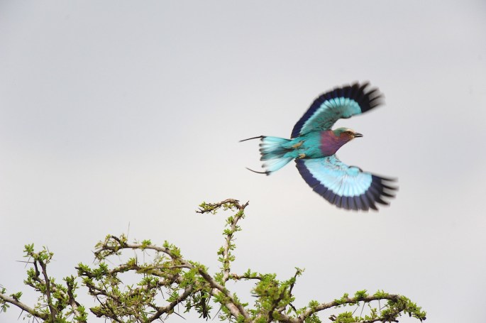 Så når vi er på tur, for eksempel i Afrika, kan hun peke, rope, fekte med armene, stanse bilen og konferere ivrig med guiden. Som selvsagt kan både fuglelåter og utseende – akkurat som Fuglegutta. I min fortvilelse over å ha fått historien i bakhodet, og en kvinne som altså sitter med nesa i oppslagsbøkene som en ornitolog, har jeg begynt å fotografere fjærkreene. Om ikke annet for å få tida til å gå. Jeg oppdager også til min forferdelse at jeg har begynt å lære meg fuglenavn – på utenlandsk. Lilac Breasted Roller, for eksempel. Eller Grey Crowned Crane, Secretary Bird, Hornbill, Superb Sterling, Marabou Storch – og så bortetter. Jeg er ikke spesielt god, verken på navn eller bilder, men legger ut en liten smakebit her. Den kan i alle fall fungere som en hilsen til fuglegutta.